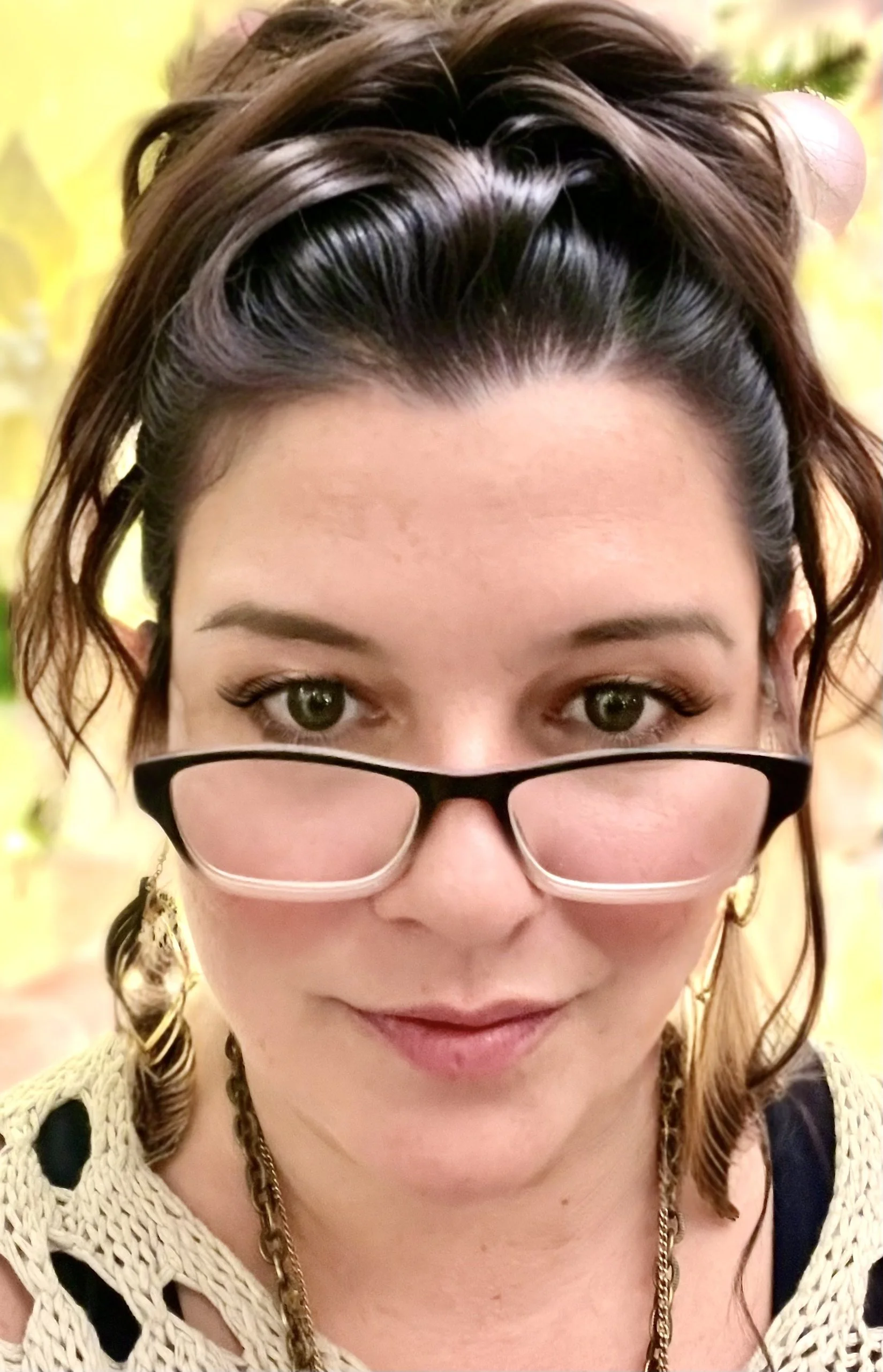 A photo of Lauren with dark hair, dark eyes, and glasses