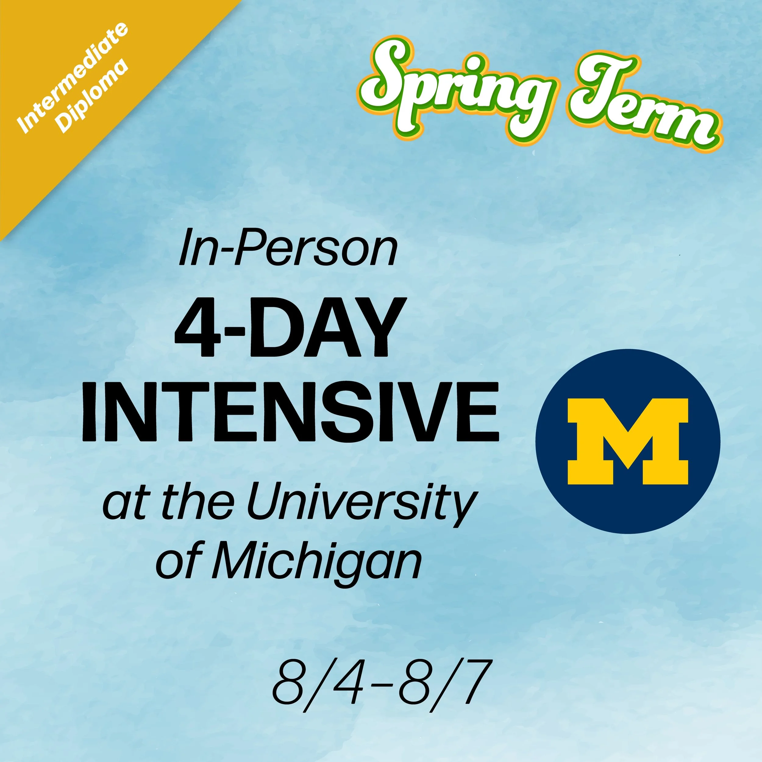 The TIE Four-Day In-Person Intermediate Intensive will take place on campus at the University of Michigan in Ann Arbor. Ann Arbor is located approximately 25 miles from Detroit Metropolitan Wayne County Airport (DTW).
